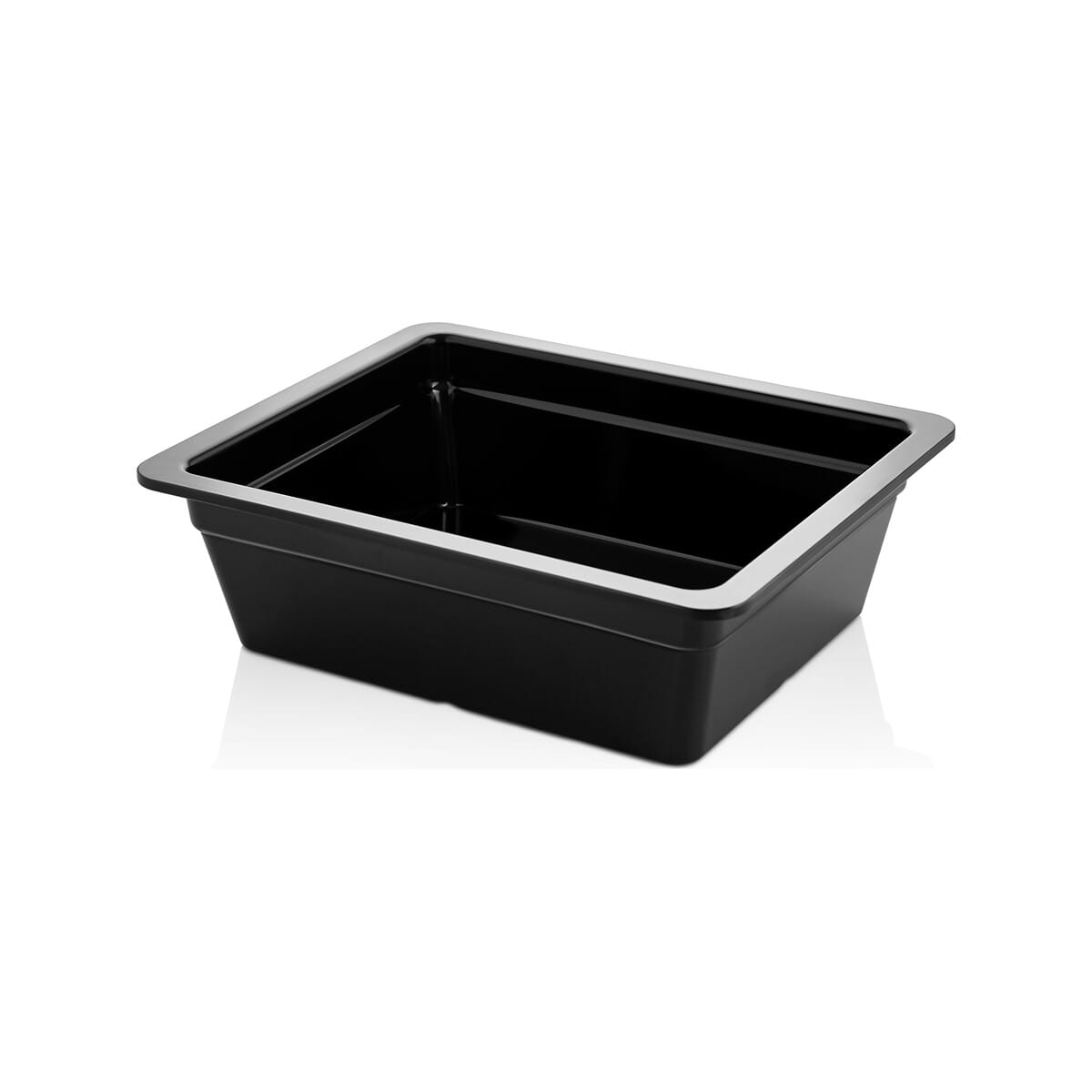 Το δοχείο γαστρονομίας μελαμίνης μαύρο 1/2 617BK διαστάσεων 32.5x26.5x10cm από τη YUK είναι ιδανικό για αποθήκευση, μεταφορά και σερβίρισμα τροφίμων σε εστιατόρια και catering. Η μαύρη ματ επιφάνεια δίνει μοντέρνο στυλ και αντέχει στην εντατική χρήση. Στο μέγεθος 1/2 GN οργανώνει τέλεια επαγγελματικές κουζίνες με επαρκή χωρητικότητα.