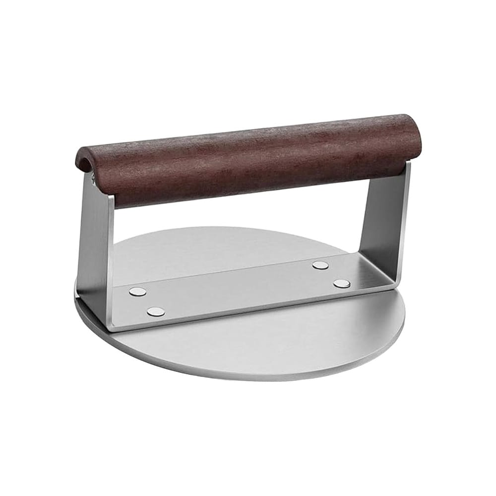 Η επαγγελματική ανοξείδωτη πρέσα smash burgerLH06 με ξύλινη λαβή και διάμετρο πλάκας 16εκ είναι ιδανική για τέλεια smash burgers με τραγανή κρούστα σε εστιατόρια, burgerάδικα και food trucks. Η βαριά ανοξείδωτη πλάκα πιέζει ομοιόμορφα το κιμά, ενώ η ξύλινη λαβή προσφέρει άνετο και ασφαλές κράτημα σε υψηλές θερμοκρασίες. Η ανθεκτική inox κατασκευή εξασφαλίζει μακροχρόνια χρήση και εύκολο καθαρισμό.